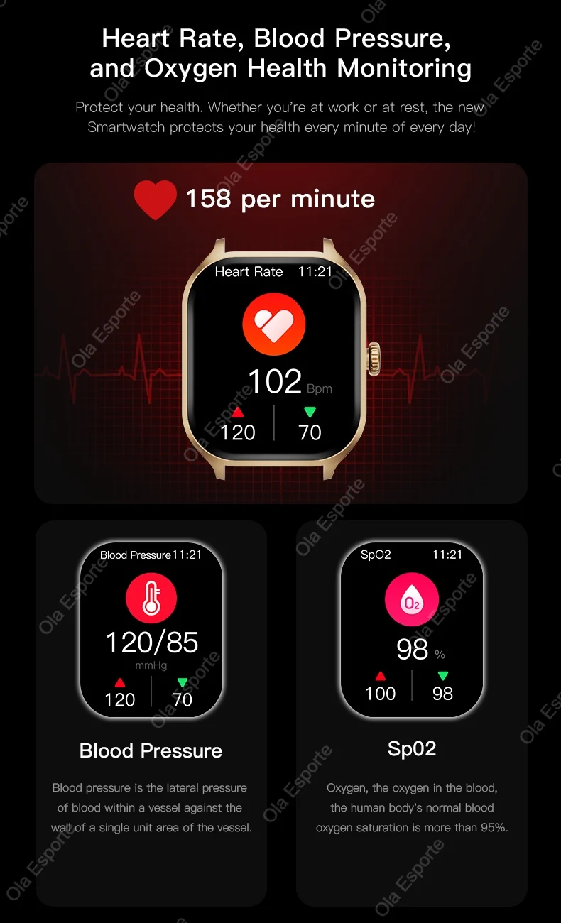 Other function: About, Alarms, Messages, Calculator, Weather, Dial Settings, Receipt Code, Drainage, Lift Hands to Light Up the Screen, Remote Picture Taking, Exercise Logging, Do Not Disturb Find Phone, Stopwatch, Timer, , Rest Pointer, Sound Settings, Language Settings, Time Settings, QR Code, Passcode Lock, Ola Esporte, System Menu.